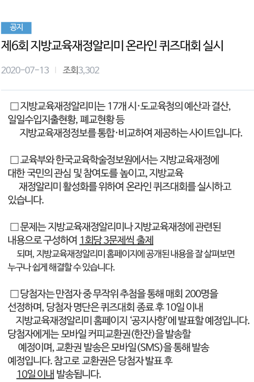 제6회 지방교육재정알리미 온라인 퀴즈대회 이벤트 참여링크