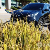 (동해=연합뉴스) 이해용 기자 = 27일 강원 동해시청 현관 앞에 설치한 대형 화분에서 벼 이삭이 익어가고 있다. 2020.10.27 dmz@yna.co.kr (끝) [이 시각 많이 본 기사...